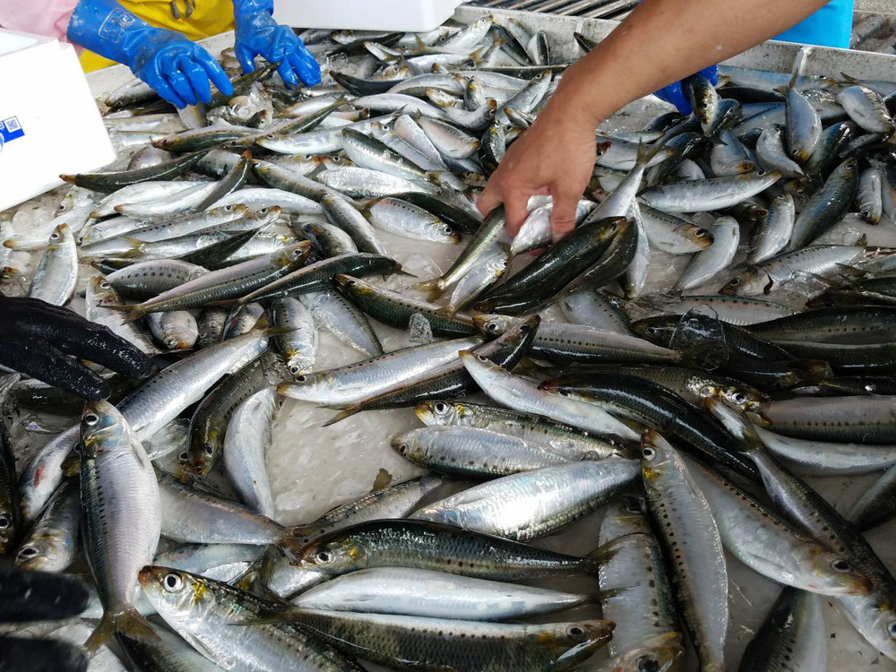 大羽、中羽イワシ、仕分けします。
